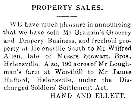 In 1919 Wilfred purchases Mr Graham’s Grocery and Drapery Business, and freehold property – he has left Messers Stewart Bros. store to start his own.